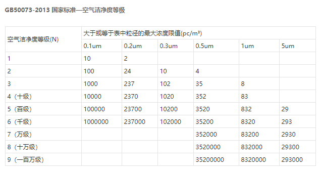 空氣潔凈度等級(jí)(air cleanliness class):潔凈空間單位體積空氣中,以大于或等于被考慮粒徑的粒子最大濃度限值進(jìn)行劃分的等級(jí)標(biāo)準(zhǔn)。國(guó)內(nèi)按空態(tài)、靜態(tài)、動(dòng)態(tài)對(duì)無(wú)塵車間進(jìn)行測(cè)試、驗(yàn)收,符合《GB50073-2013 潔凈廠房設(shè)計(jì)規(guī)范》、《GB50591-2010 潔凈室施工及驗(yàn)收規(guī)范》。