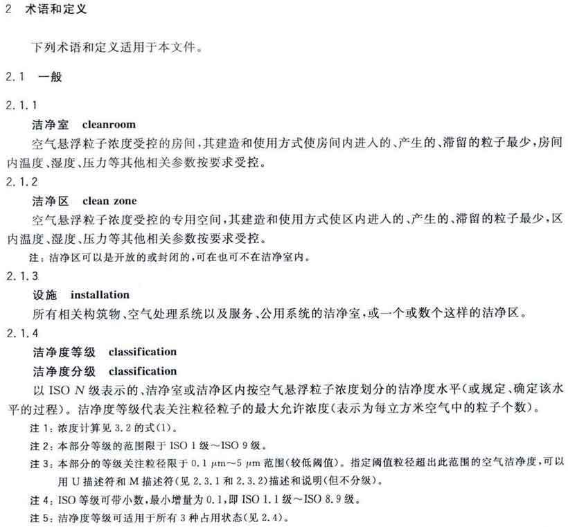 潔凈室及相關(guān)受控環(huán)境第1部分:空氣潔凈度等級 GB/T25915.1-2010